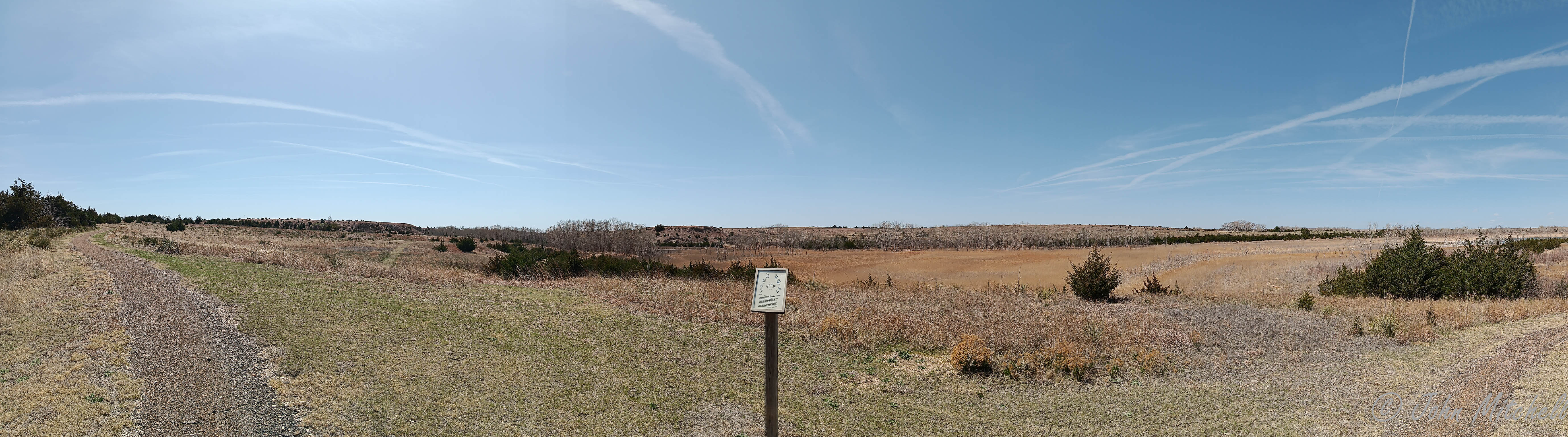 Agave Ridge Nature Trail has a 1 mile loop and a longer 5.4 mile loop that includes the 1 mile loop. (FYI, the pamphlet pdfs will probably try to download.) Here is a pdf version of the pamphlet for the hiking trail. While looking for that, I found another useful pamphlet listing hiking trails. Here is a pamphlet of the state managed hiking trails in Kansas.