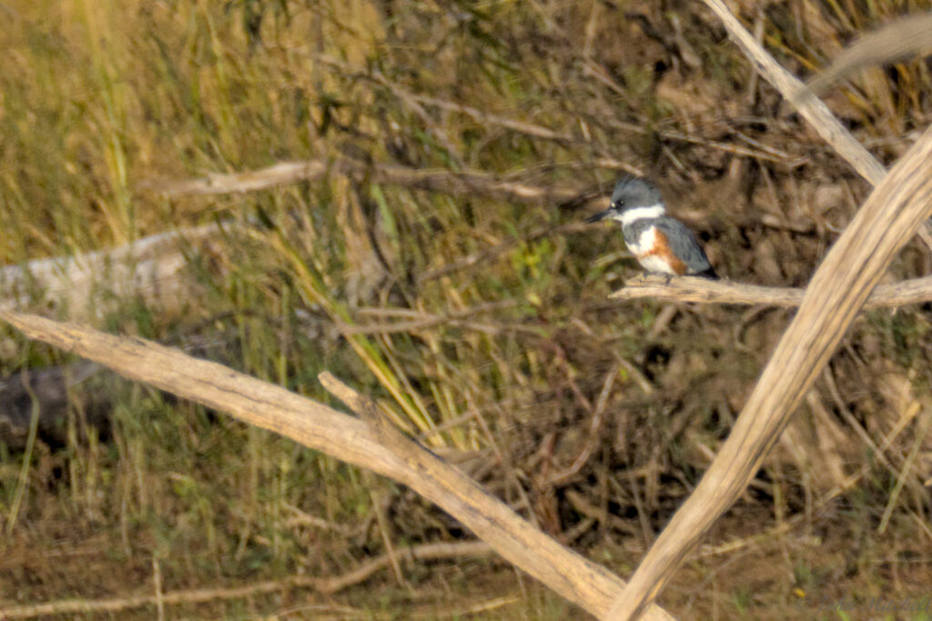 The Alcedinids are the family of kingfishers; they are small to medium sized birds that are often brightly colored. Most kingfishers live in tropical areas. Their typical hunting mechanism is to perch on branches and swoop down on prey. Not all kingfishers live near lakes and hunt fish.