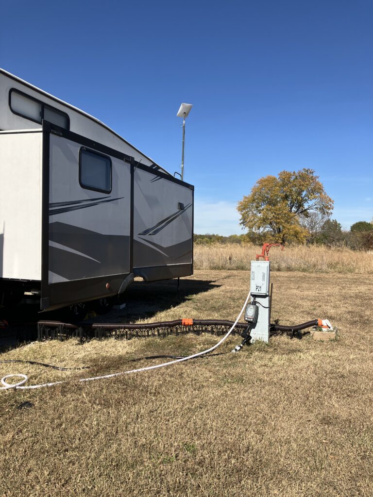 Star Link (our internet) needs to be on a pole on the back of the trailer because people walk behind the trailer and we don’t want them to step on the cord or bump into the dish can cause damage.