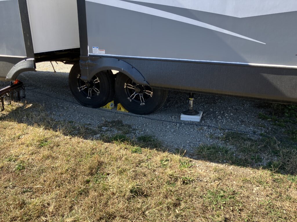 Note: The number of wood boards under the tires depends on the camper location in the parking area.