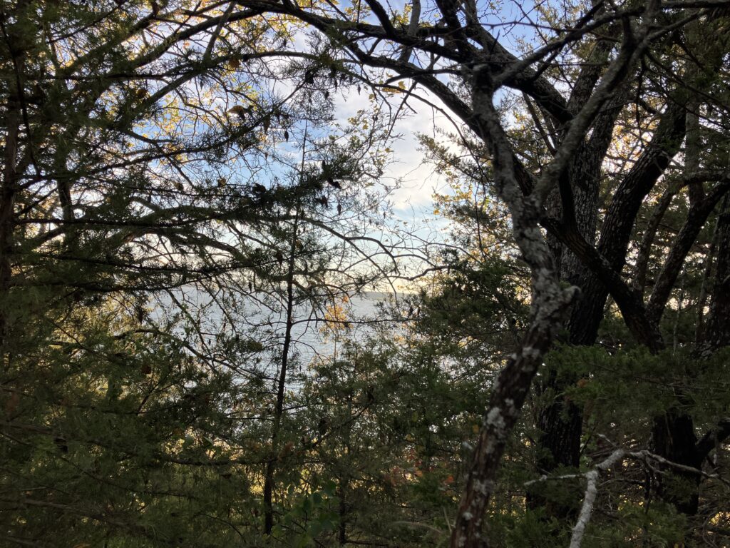 The hope was that the red trail would run along the water and we would have great water views. John said the white and blue trails did not have great water views even though the trail looks like it is near the water on the map.