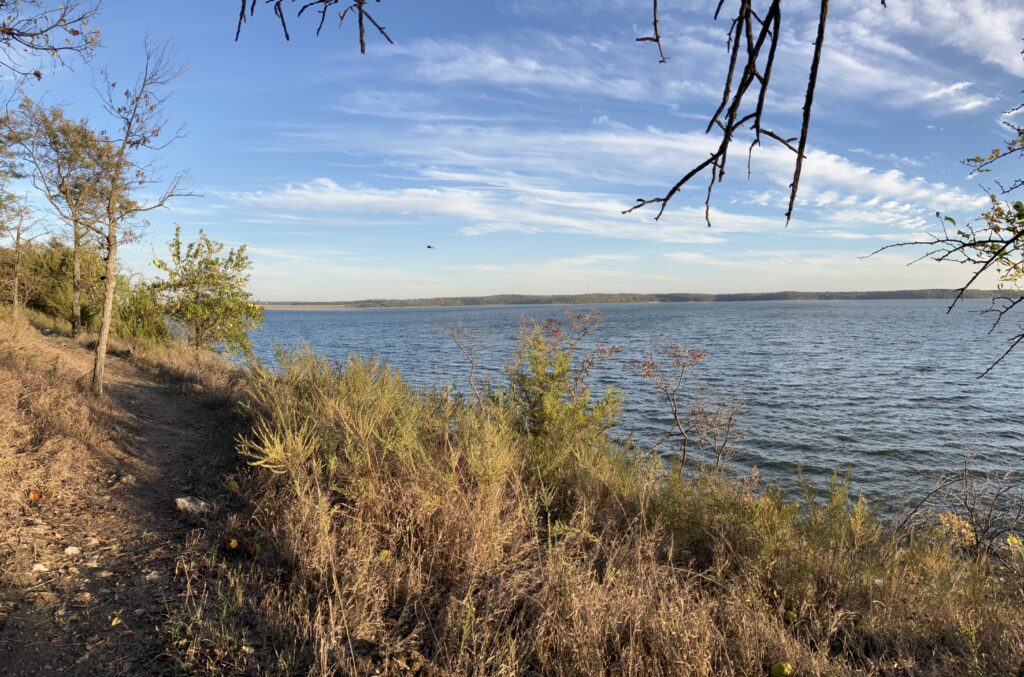 The good news was that we did see the lake on the last half of the trail. John talked about canoeing the lake. We both agreed that lake was probably too large to canoe across it, especially since we saw sailboats on the lake.