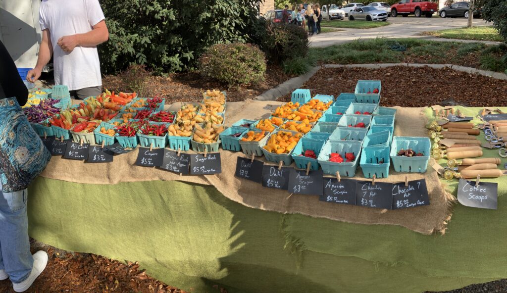 Now the market has 49 vendors. Many of the vendors are still selling agriculture products ranging from vegetables, fruits, honey, meats, mushrooms, flowers, etc. The market also includes baked goods, kettle corn and hot meals.
