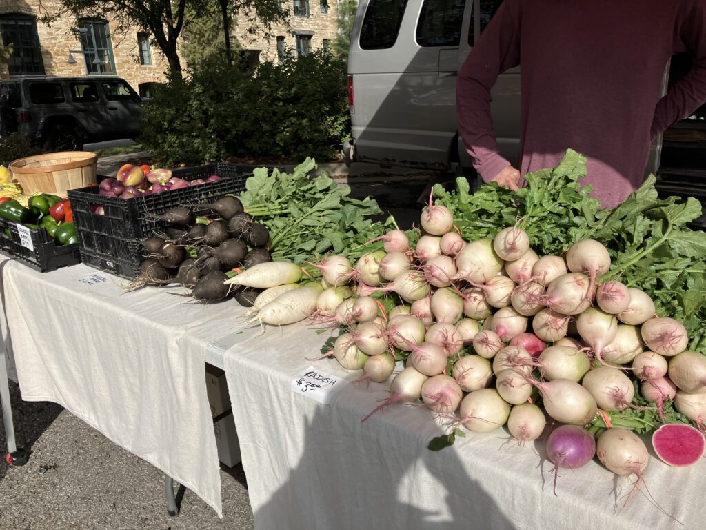 Most of the vegetable stands were fairly expensive. I did buy 2 items. Purple peppers (2 for $1) and Watermelon Radishes (bundle of 3 for $3). Watermelon radishes have a red inside with white exterior skin. Purple peppers are a different variant of peppers. Like green peppers, as they ripen and become sweeter, and the peppers turn an orange-ish purple in color. I plan to pickle the watermelon radishes and use the peppers for fajitas or stir-fry. The same station had other vegetables for sale. I did not buy any of them.
