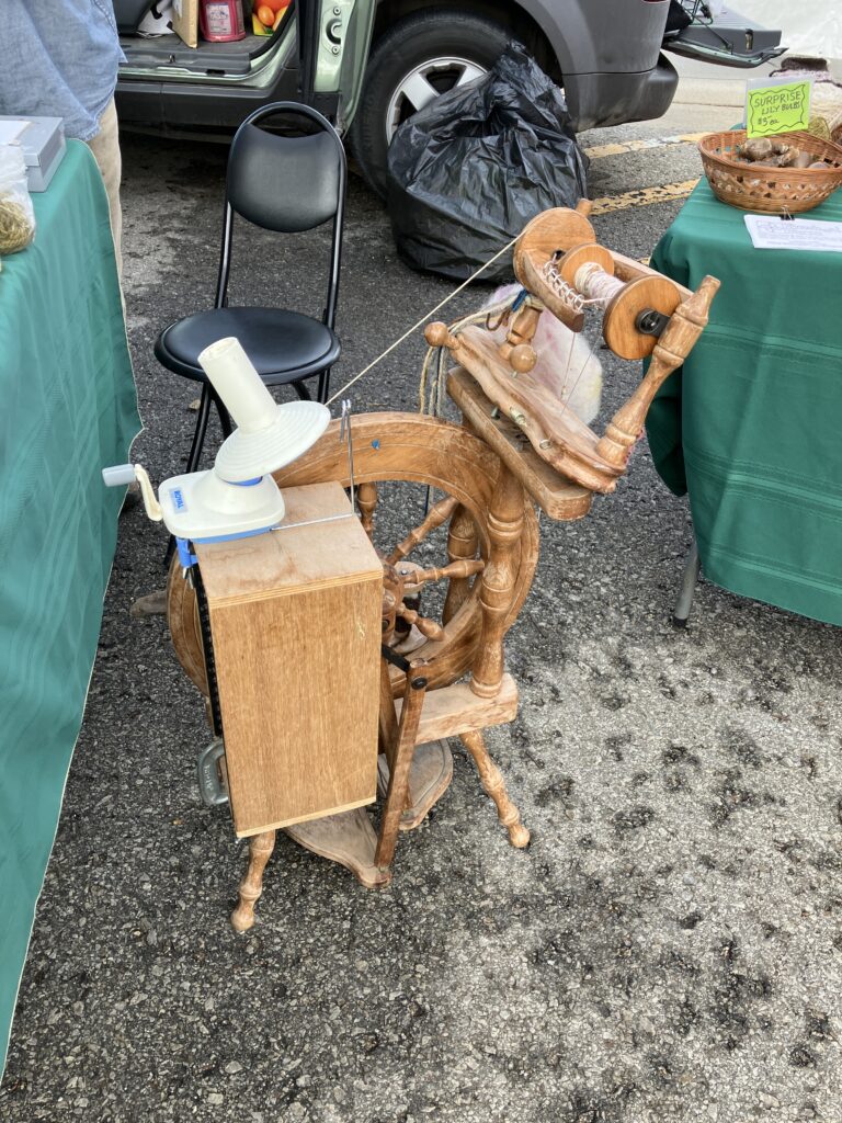 They did have a couple booths with more of a craft feel. One person was making wool yarn from her pet sheep’s fur. She demonstrated how to use the spinner which had a foot peddle. Another station had wreaths made out of dried flowers.