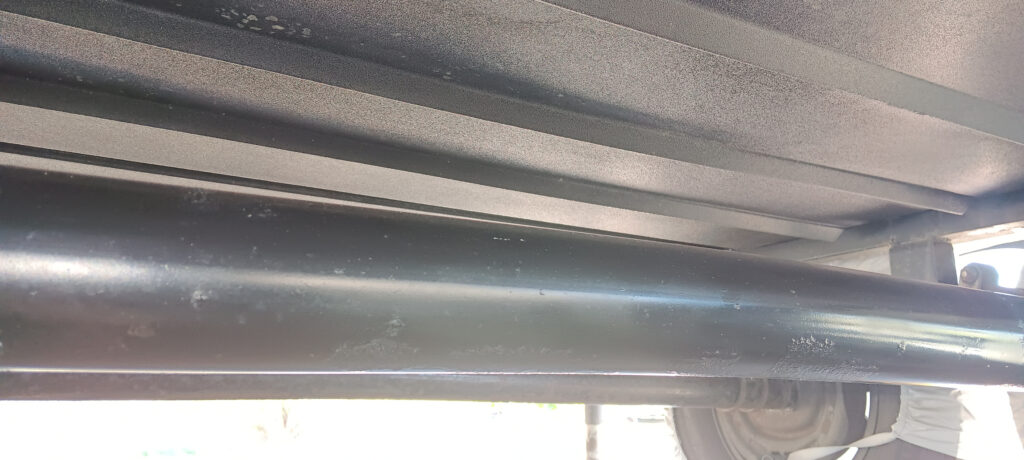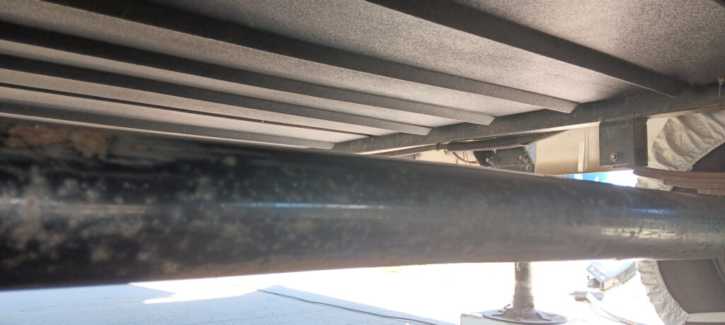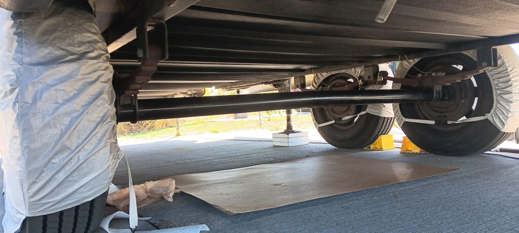 Our current RV is holding up better than our first one, but we found that the powder coating on the metal frame and axle leaves a lot to be desired. We did not maintain the frame on our last one as early as we should have. It was not disastrous, but it was a lot of work, when we got around to it. We decided to start earlier on this one. The biggest issue is the axles; both of them have a lot of blistering coating and rust.