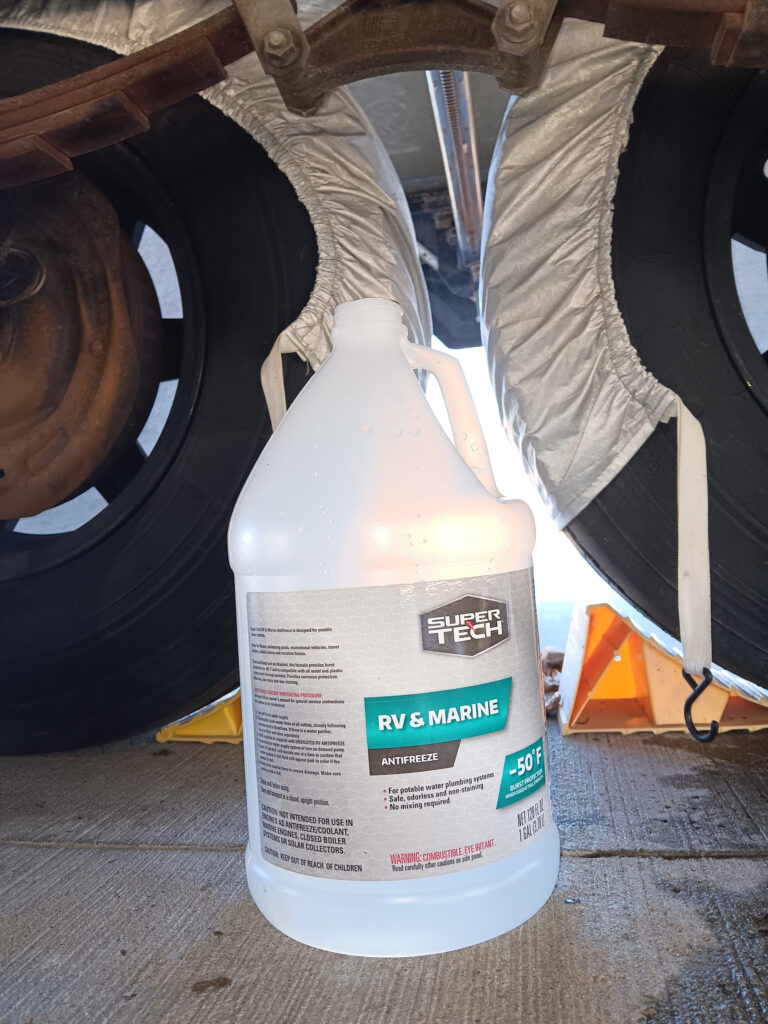 We keep an old winterizing fluid jug for tasks like this or flushing when the water is turned off. In the other picture, you can see the dirty to clean progression.