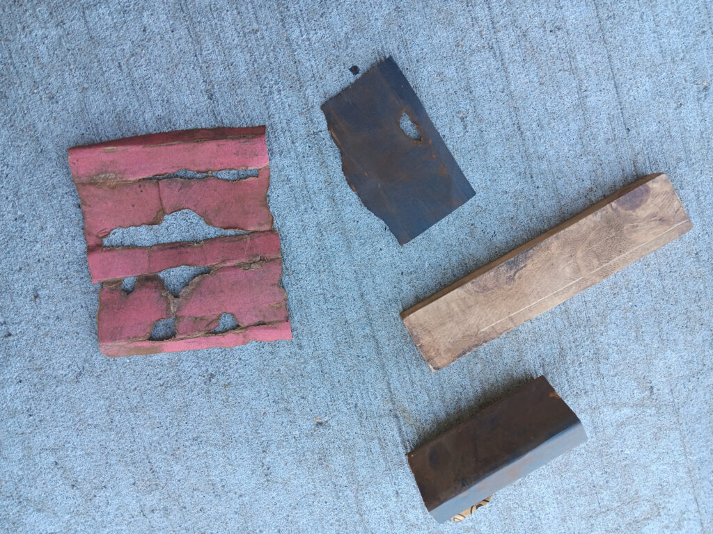Step 1: Examine the metal framing and axle. If the metal is smooth, like our axles, you can see the obvious rust as the orange-ish brown sandy looking regions. In the picture below, you can see where the powder coating is blistered up in two areas near a little bit of rust. Those areas have rust under the powder coating. Sometimes, there is only blistered powder coating without visible rust.