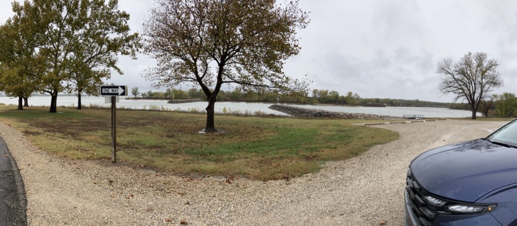 Pomona Lake is within a few miles of Green Acres. So off we went in the rain to explore Pomona Lake. The lake and park itself looked like a nice place to visit. The first place we stopped was Outlet Campground which turned out to be blocked off and closed. I was hoping to drive through it since this is the only campground open through October 31st. The reason for the closure was the electrical was being upgraded to 50 amp. We did notice a lot of trees. Most likely, this means that we would not have Starlink Internet, and we would have to rely on the hotspot.