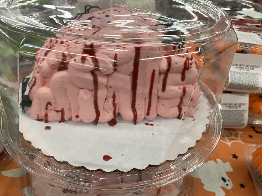 I figured John deserved a treat since I picked the restaurant. On the way back to camper, we stopped at Walmart. John got a small lemon bundt cake. I thought he should pretend to be a zombie and eat the brain cake 🙂