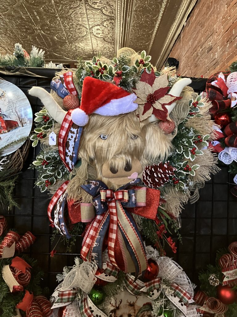 Wreaths were everywhere for every occasion. One of my favorites has a cow in the middle, but it was selling for $130 (wow). I also really liked the snowman wreath.