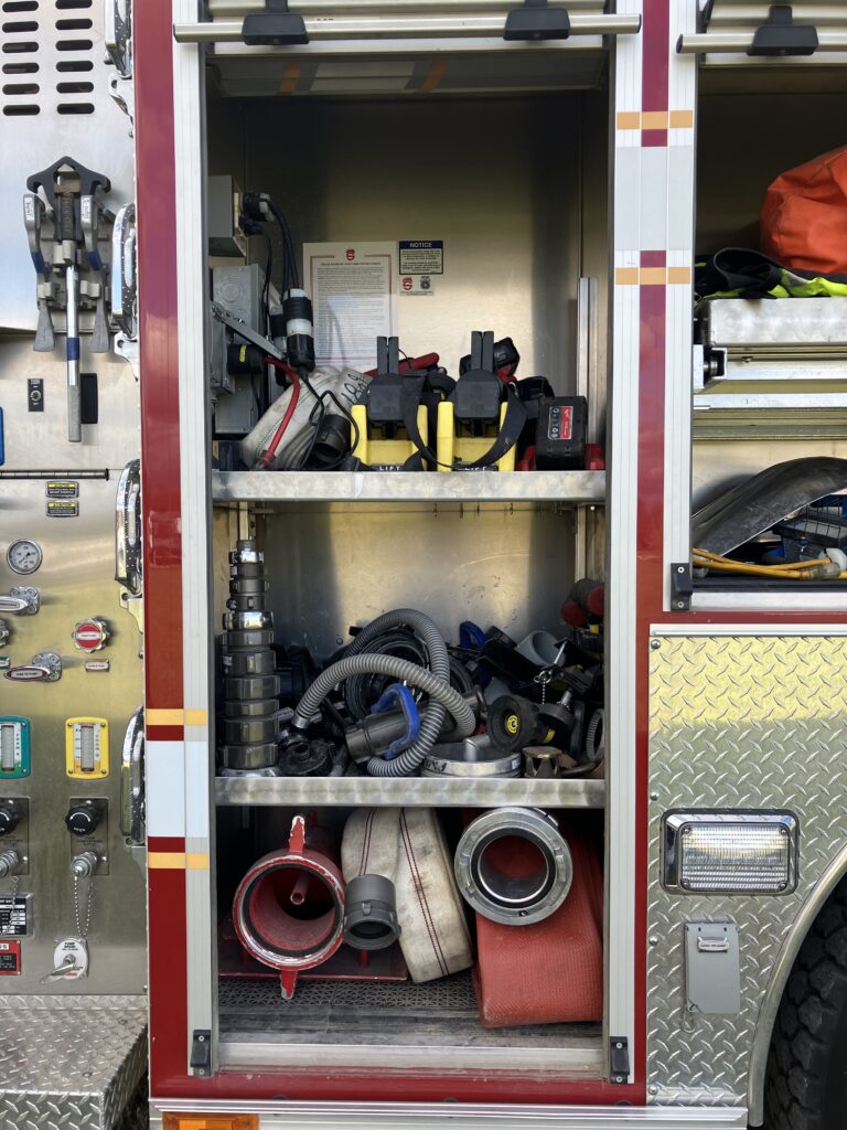 My 2nd favorite activity was Paola Fire Department brought a truck to the Fall Fair. People were able to not only look at the truck but climb inside and learn about how fire trucks work. Of course, I had to climb inside. My biggest lesson learned is that it is harder to get into a fire truck than you would think. I also enjoyed seeing all the various tools used by the fire fighters and how they are stored.
