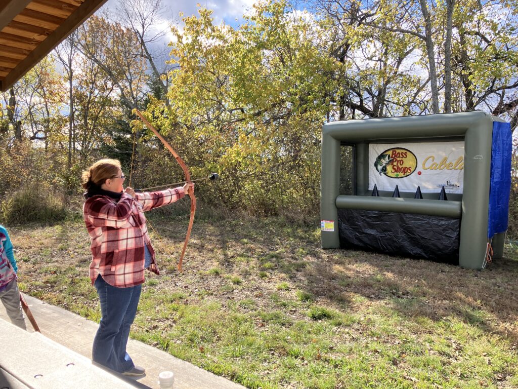 My favorite game was the Cabela blow up bow and arrow practice booth. I was terrible at it and never hit, but it was fun. One of the Friends Group works for Cabela who donated the use of the bow and arrow booth.