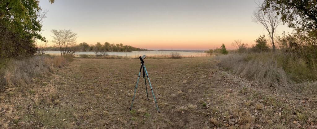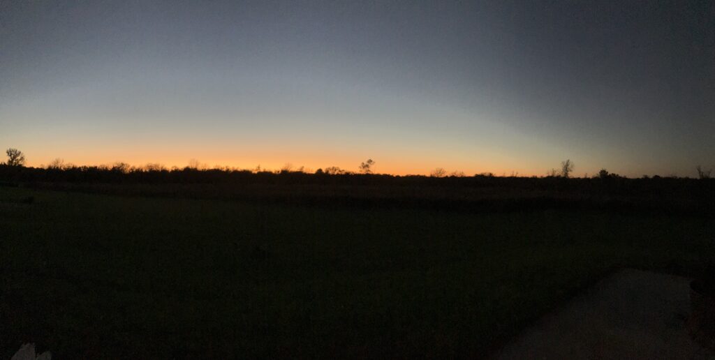 Our new campsite 119 has great sunset views. I believe the lack of light caused the selfie to be distorted. The sunset on Monday was nicer than Sunday, but I was slow on the draw and missed it. (Mostly because I was in the middle of making supper and didn’t want to overcook the chicken.)