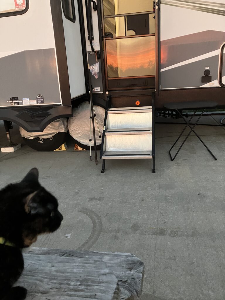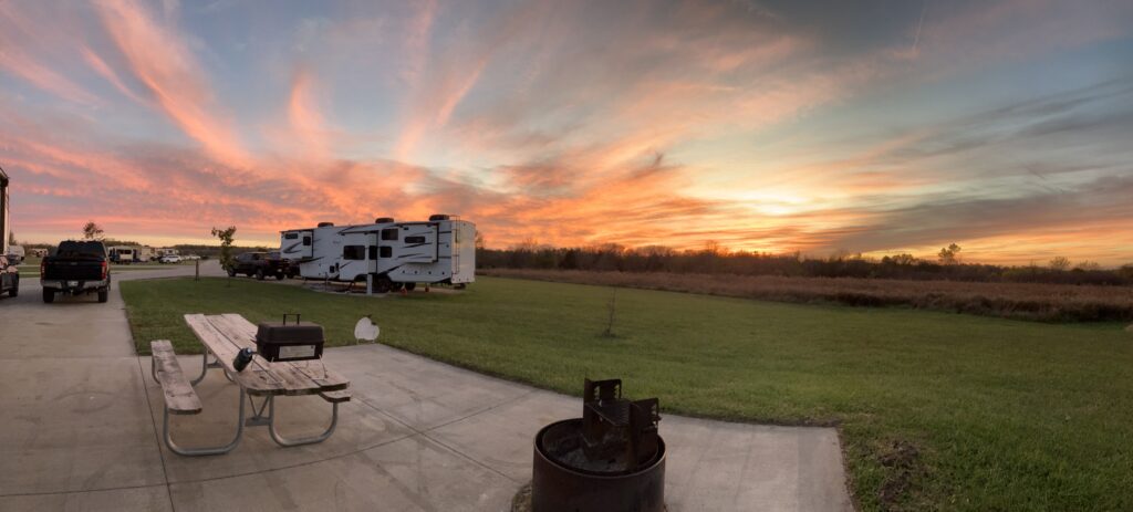 Our current campsite has great sunset views from the living room windows. I have gone out multiple times just to enjoy and try to get a decent picture. I’ve finally succeeded at getting a good to great sunset picture.