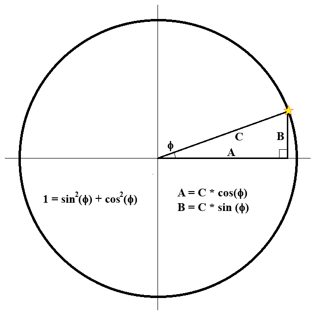 As you move the star around the edge of the circle, you can calculate the length of A and B, if you know the radius, C, and angle, Φ.
