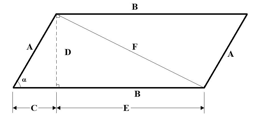F = √[A2 * sin2(α) + B2 – 2 * A * B * cos(α) + A2 * cos2(α)]