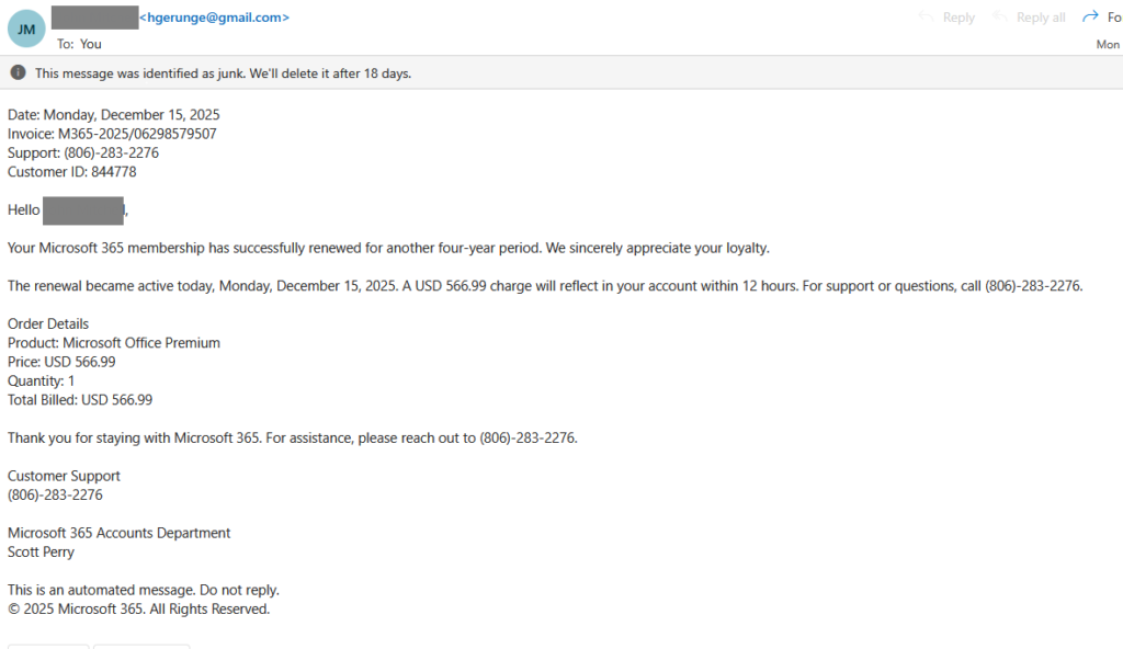 Here is an even less formatted and unbranded email from “Microsoft”.
