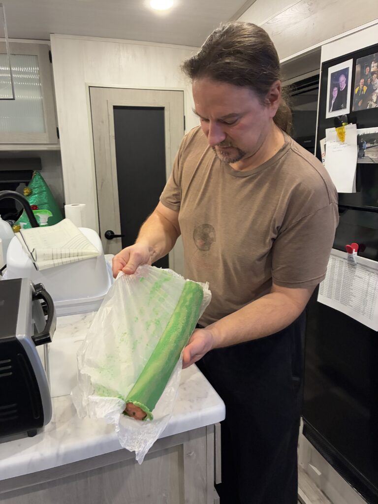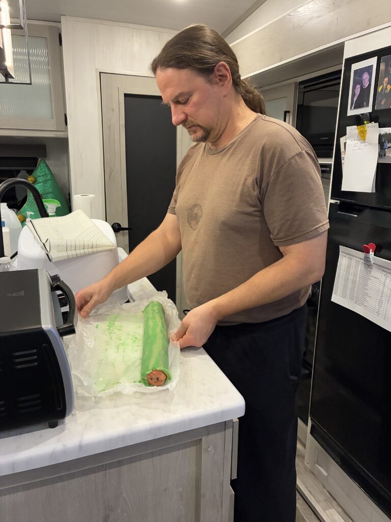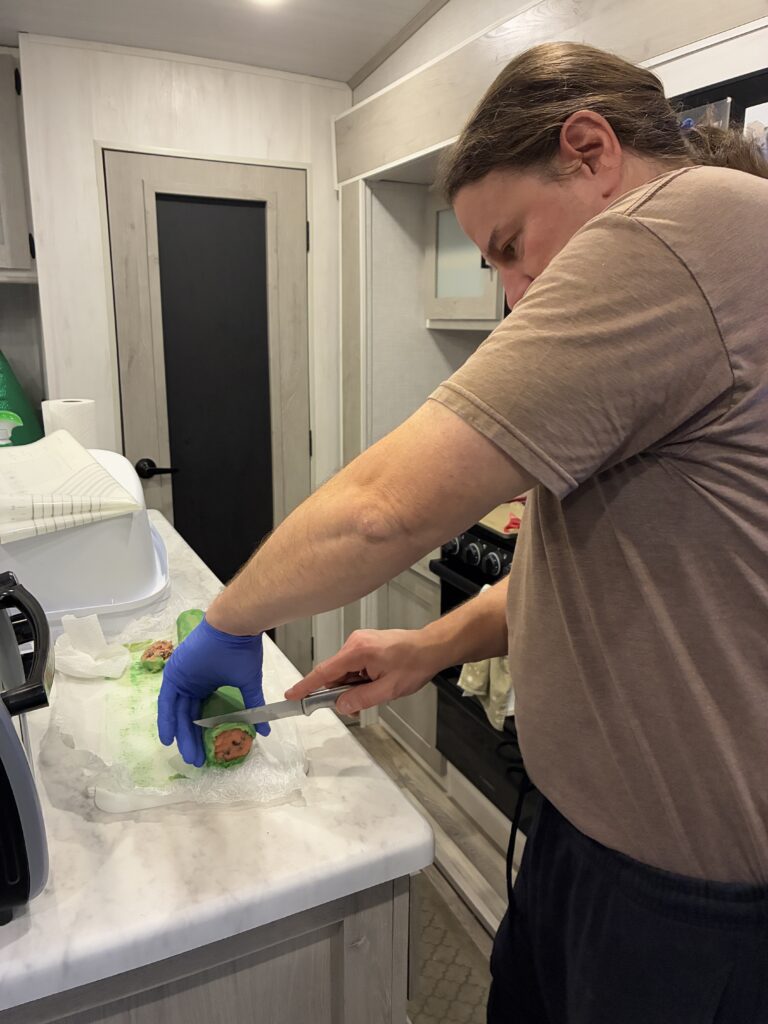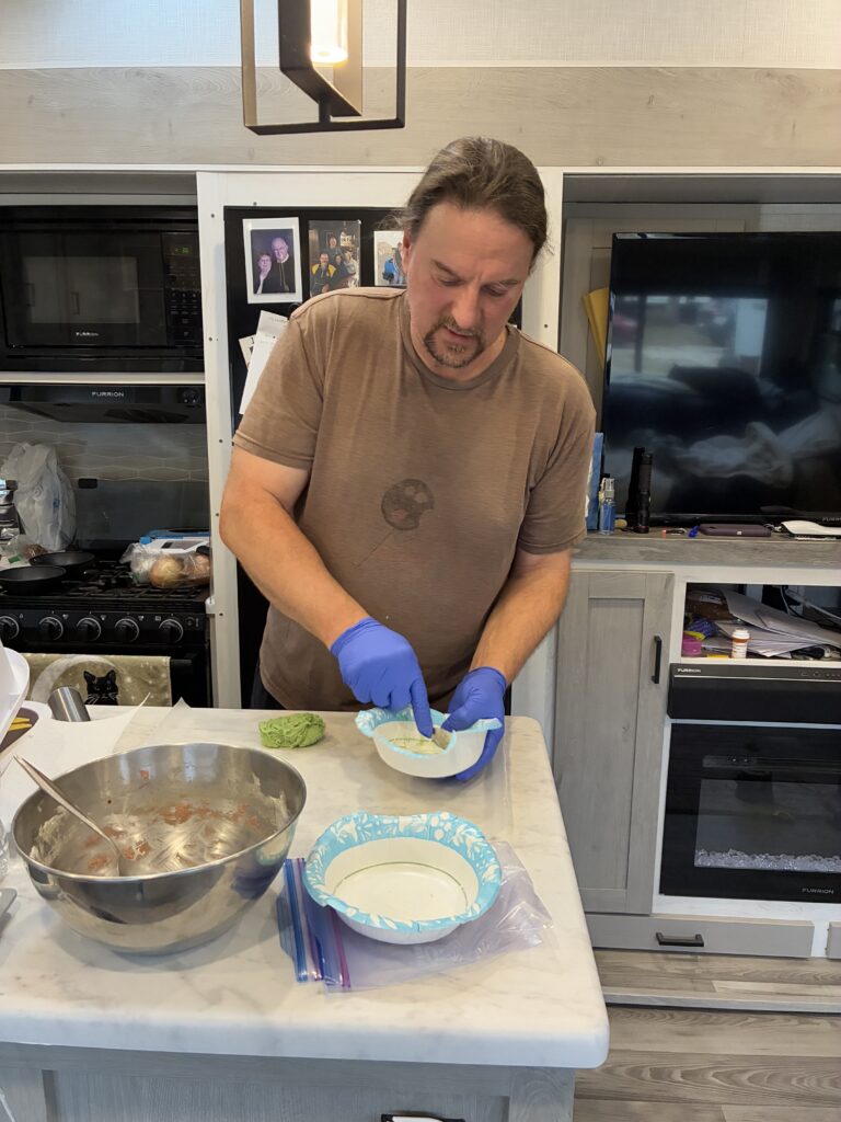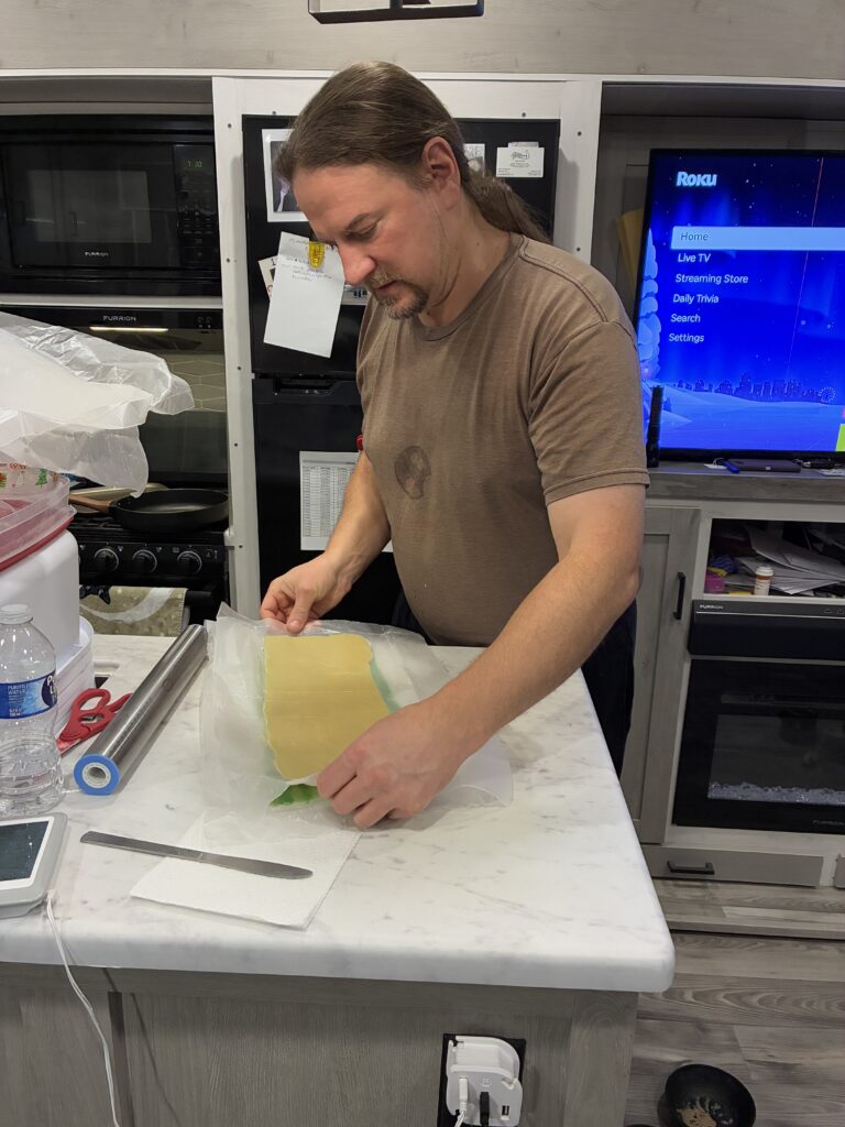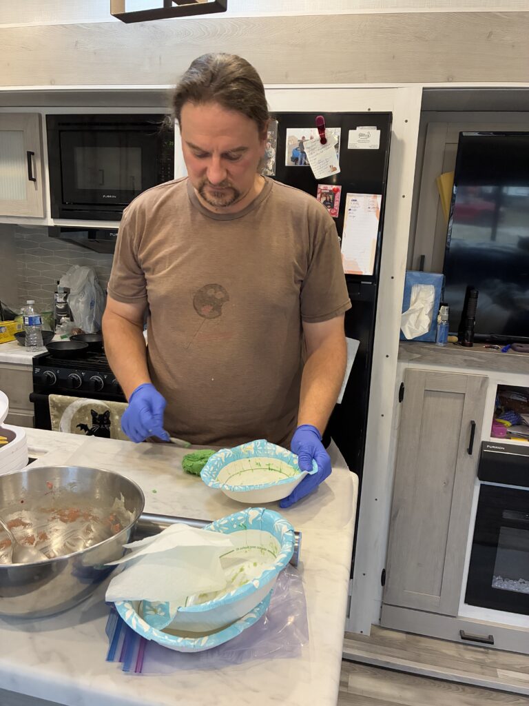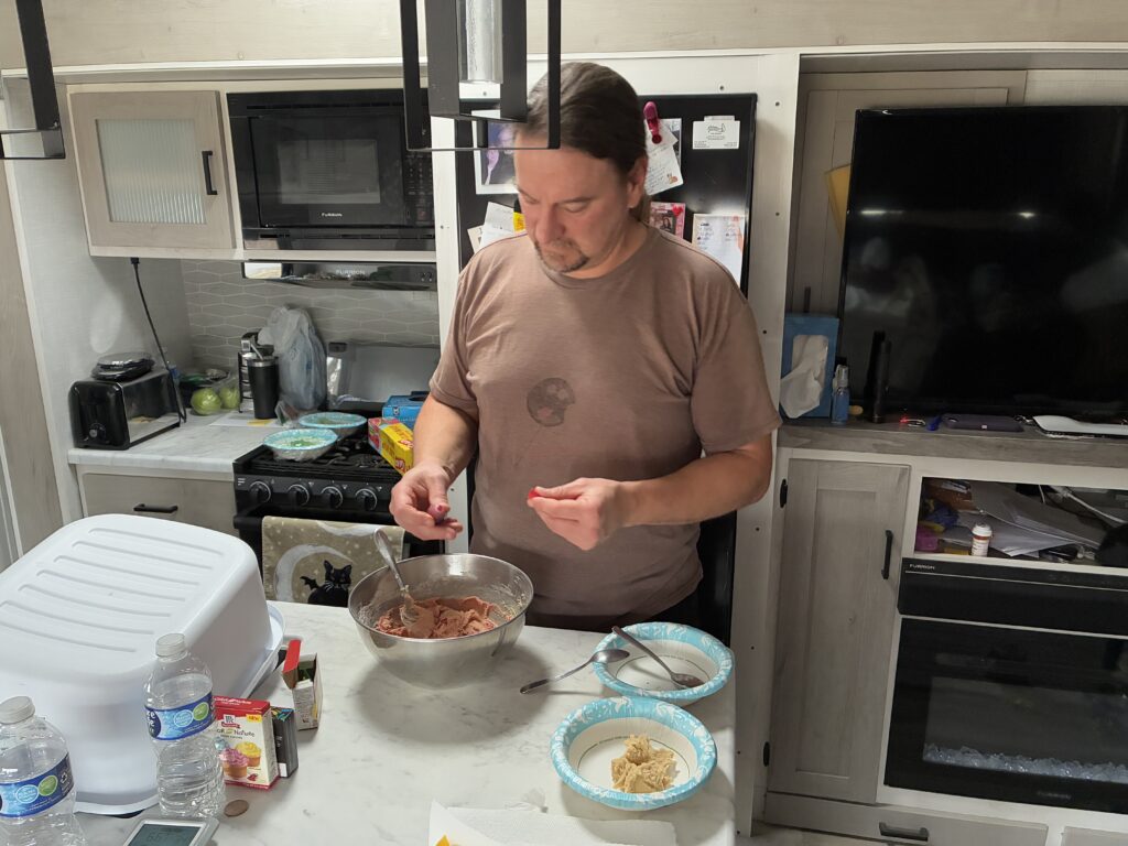• RV refrigerators do not get as cold as home refrigerators, so the refrigerated dough was hard to work with. Freezing worked better.