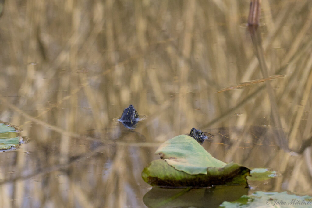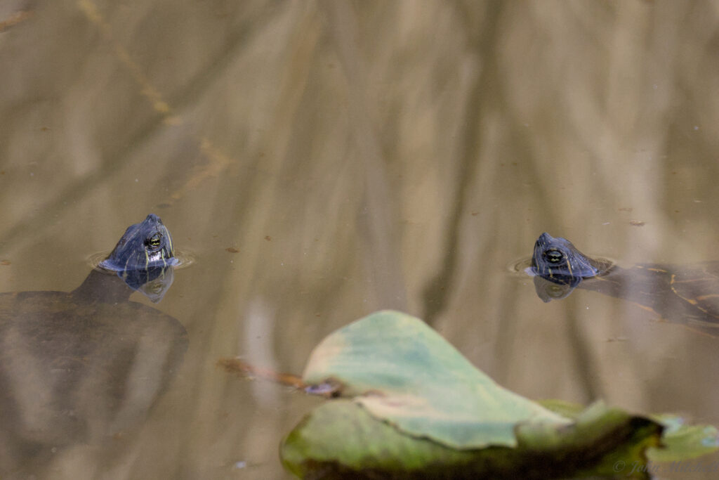 Kate has the advantage of 75 zoom with her scope. The stump turtles are closer but not necessarily clearer.