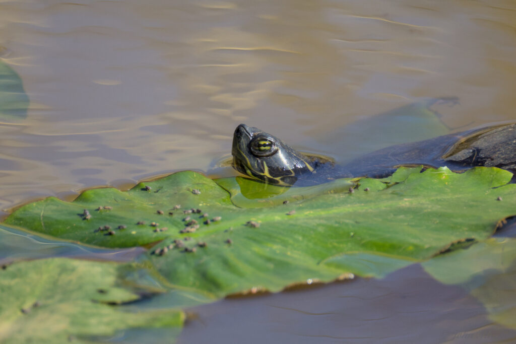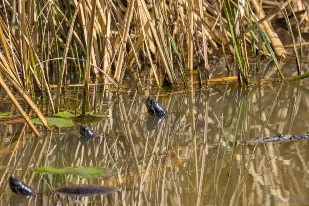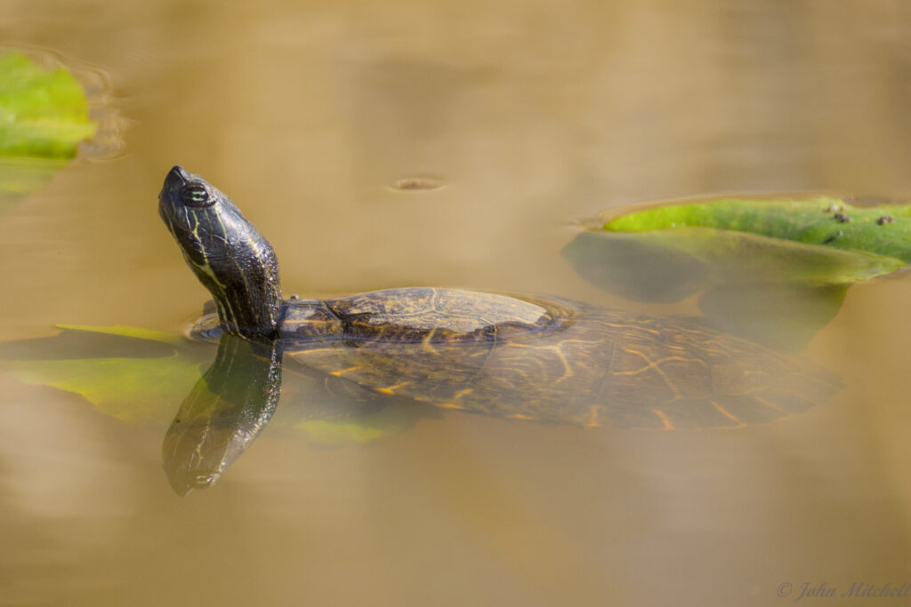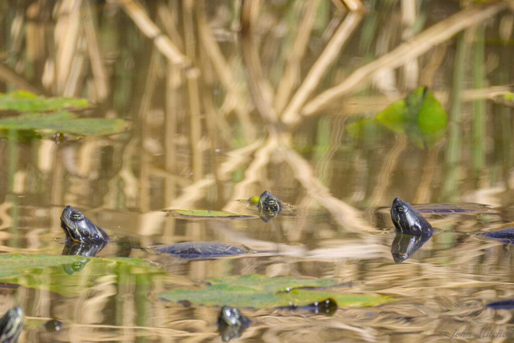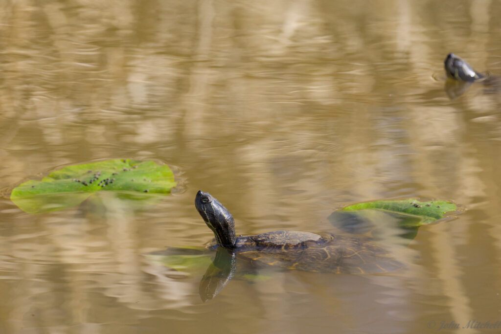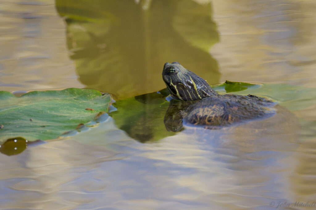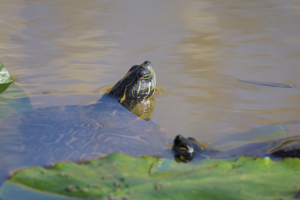 While taking pictures, John thought he saw a few minnows in the pond. On of them photo-bombed his turtle pictures. You can see the little scoundrel on the right side of the first image.