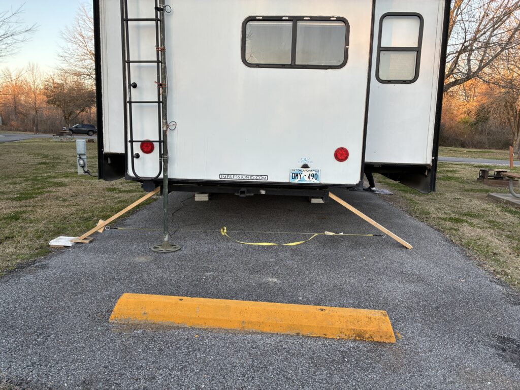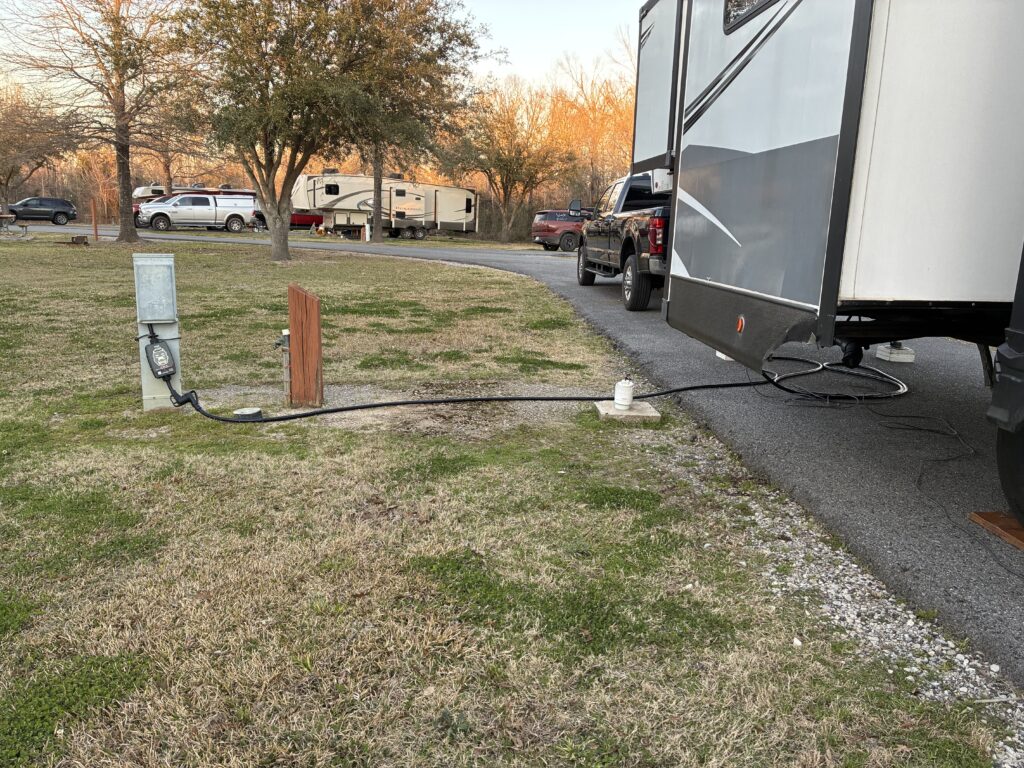 The site downside was that the sewer hookup was located at the middle of the site. If we backed all the way up our sewer hose was not long enough to connect. We decided to park more in the middle of the site. We still had plenty of room for the truck and car.