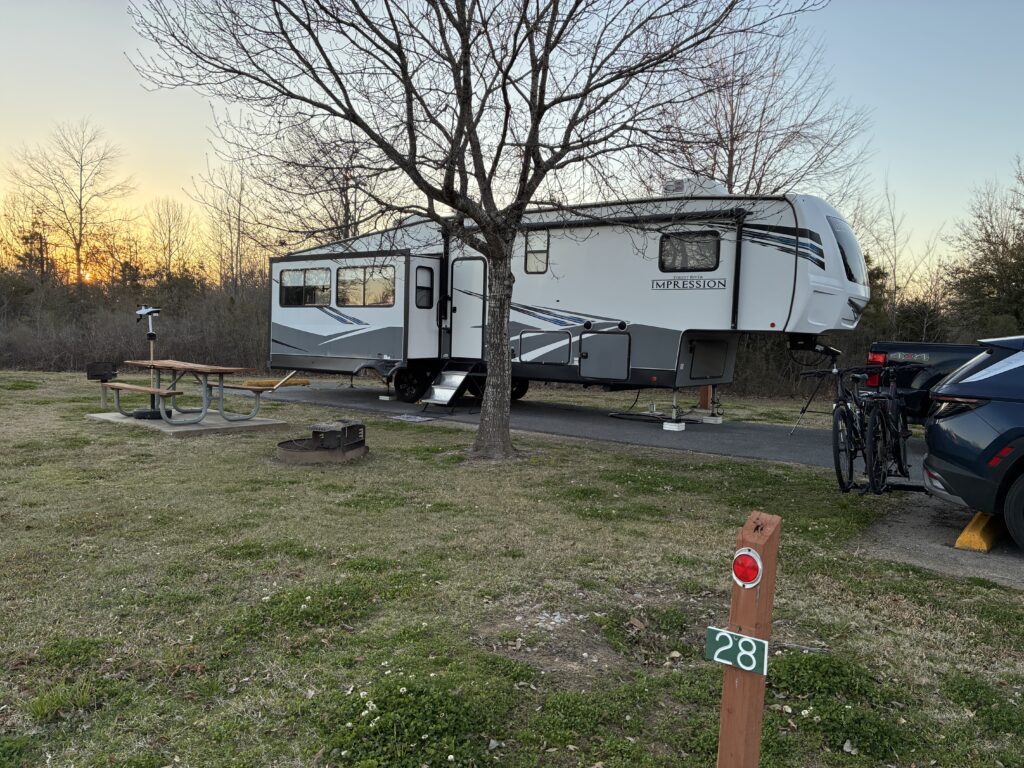 John chose site 28 which had everything we needed including full hookups, extremely long pad and extra parking space.