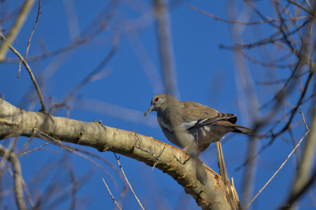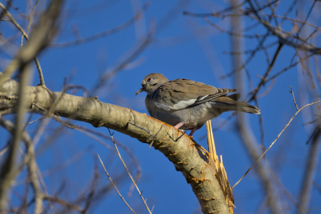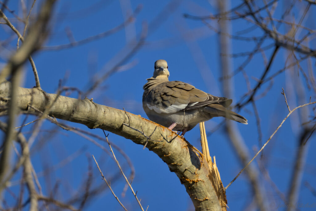 Before we left, we heard one of the White-winged Doves nearby. We were finally able to get a picture of one. They are kind of skittish. The first one was closer, but it was badly backlit by the sun.
