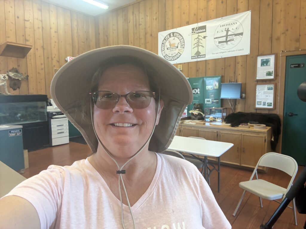 Poverty Point State Park has so many amenities like many fishing piers, fish cleaning facilities, parking and picnic areas. On top of this, the park has a large well-maintained marina with a store. The back of the store next to the minnow tubs had information related to native Louisiana animals, pelts and stuffed animals. Including the Louisiana Black Bear. Trivia fact: Annually Louisiana has a black bear hunting season. See link to black bear hunting in Louisiana – Black Bear Hunting Lottery | Louisiana Department of Wildlife and Fisheries