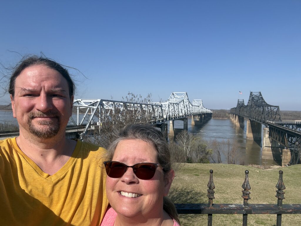 We were traveling from Poverty Point State Park in Louisiana to Bogue Chitto State Park in Louisiana. We focus on taking interstate routes which ensure no issues with underpass heights being too low since our trailer height is 13 1/2 feet. To stay on the interstate, we traveled through Mississippi and went over the Mississippi River.