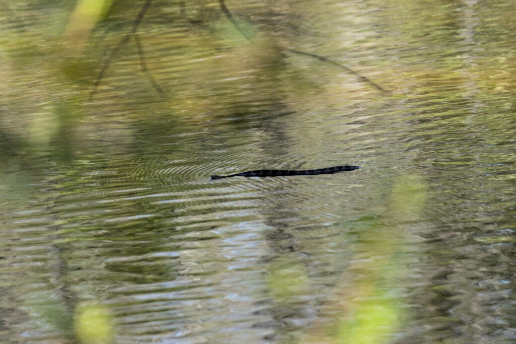 While looking at these, a snake swam by. The camera did not focus well in the shade, so the snake is blurry. John’s best bet is that it is a Northern Pine Snake.