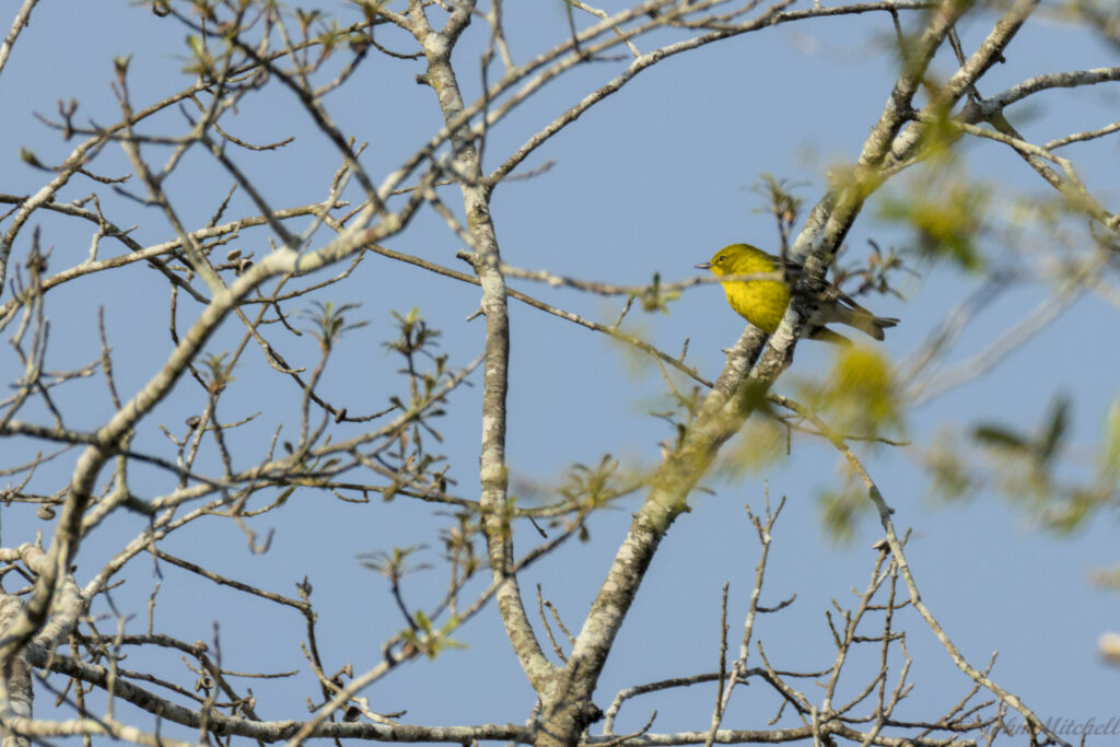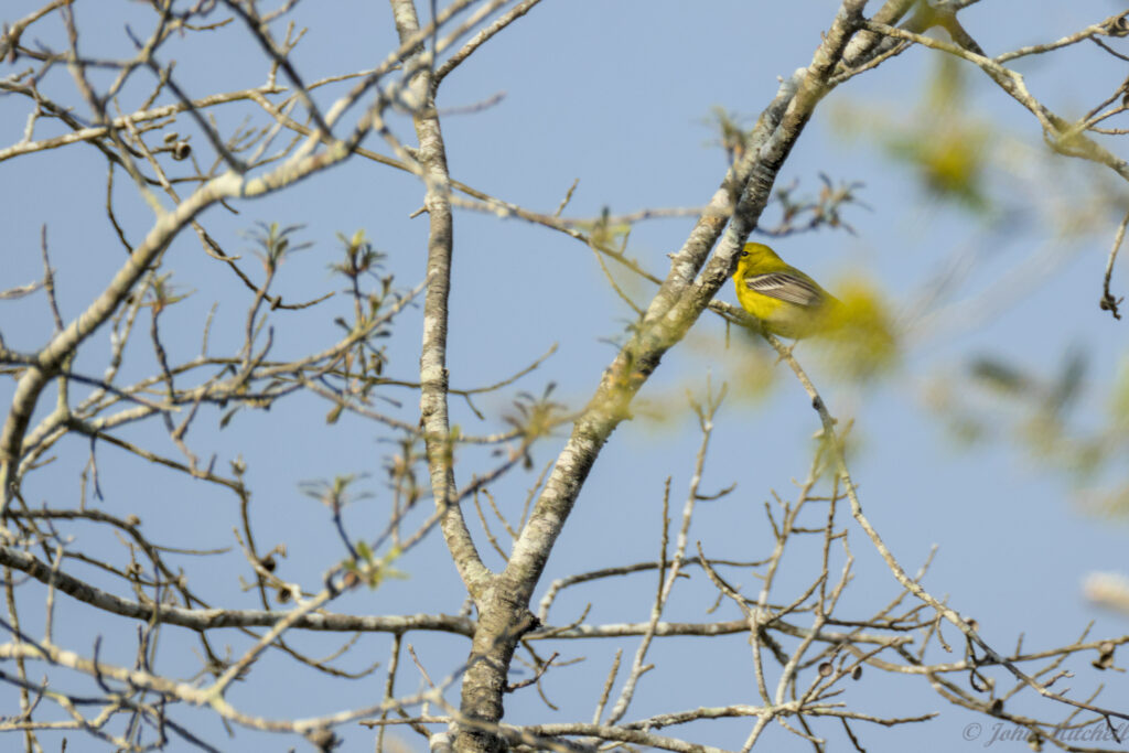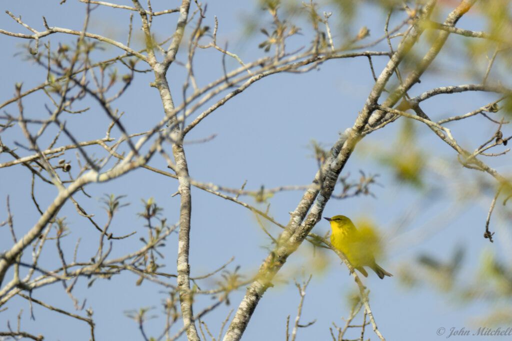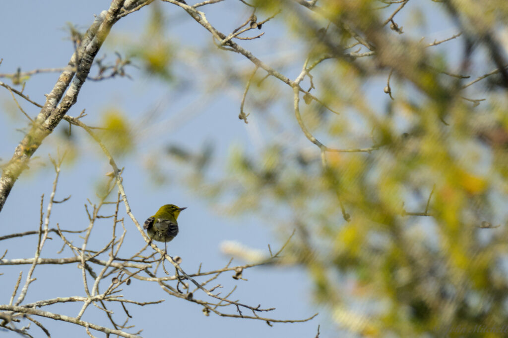 After this left, a yellow bird showed up, and John thought it was a Goldfinch. It appears that it might be a Pine Warbler. None of the pictures are great, but if you piece them together, it looks more like a Pine Warbler than a Ruby-crowned Kinglet. It looks nothing like a Goldfinch.