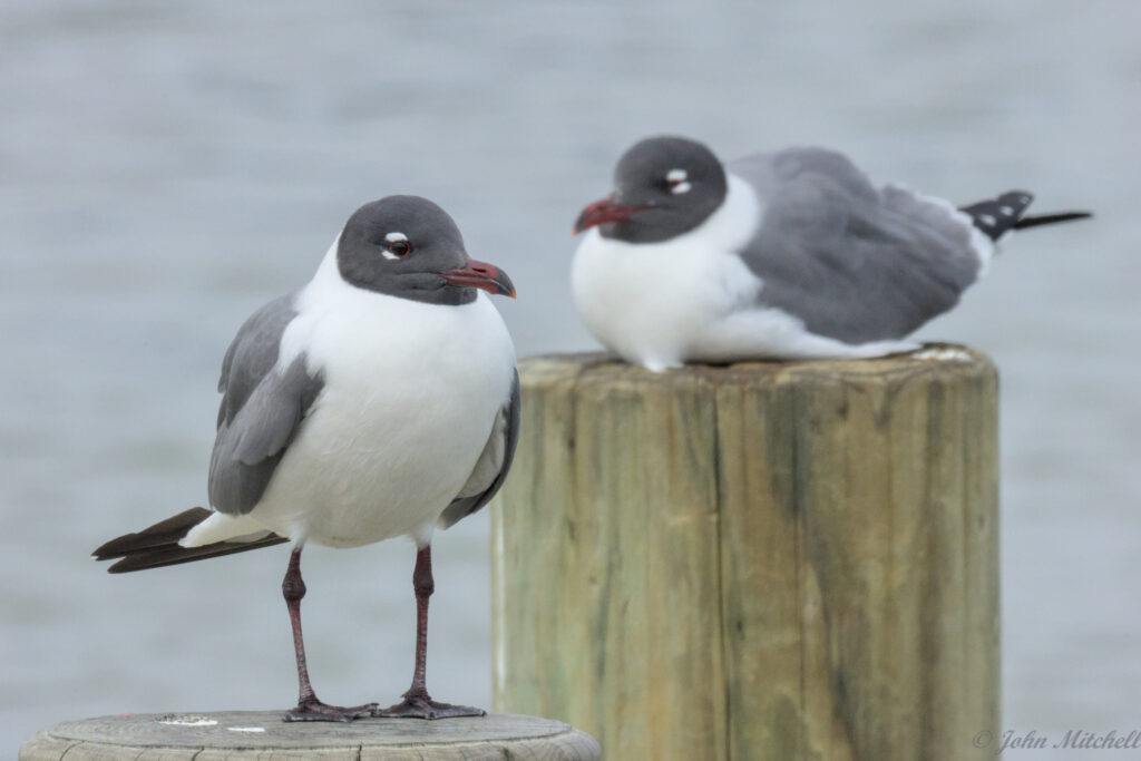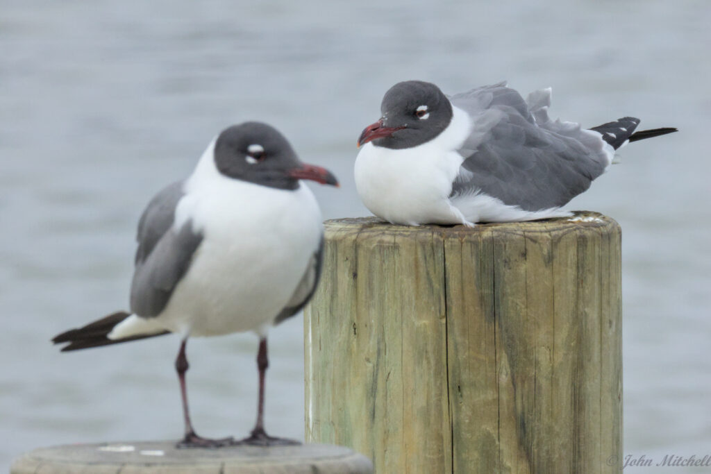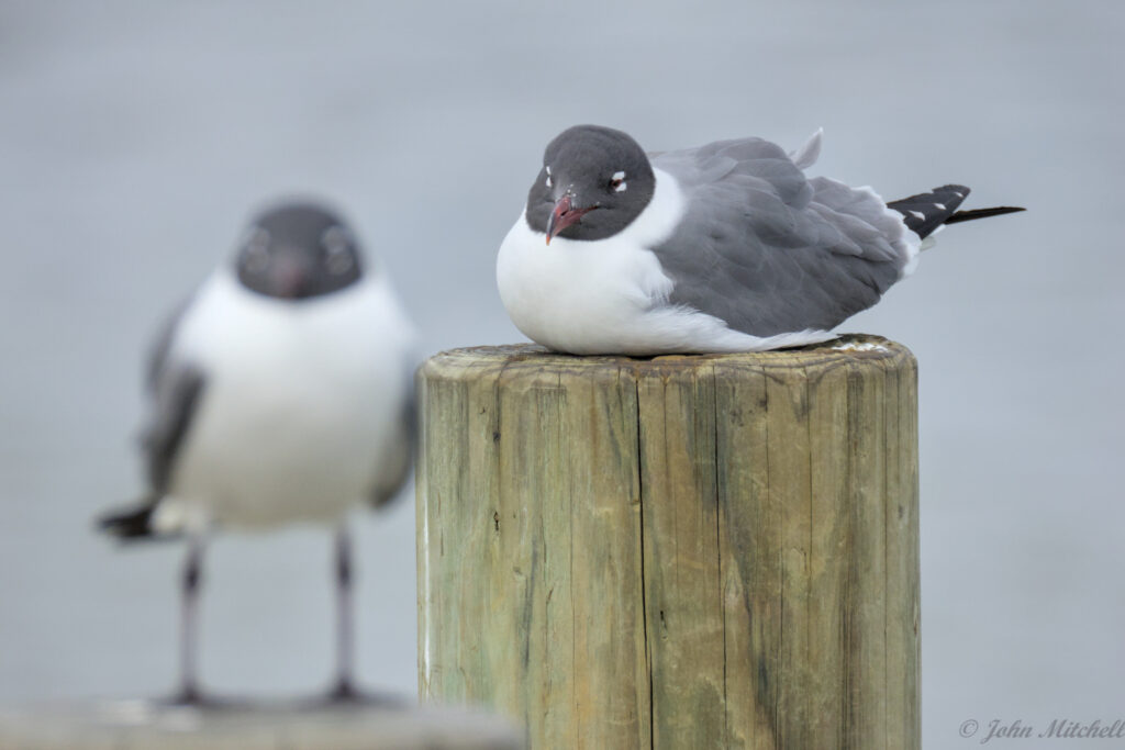 At the boat ramp, John took a few pictures of the gulls on the pylons. The ones on the left have the left bird in focus. The ones on top have a smaller aperture. You can see how the smaller aperture increase the area in focus. The out-of-focus bird is more clear in the lower pictures.