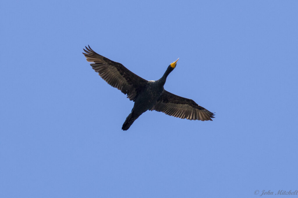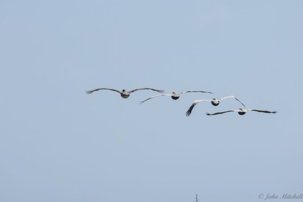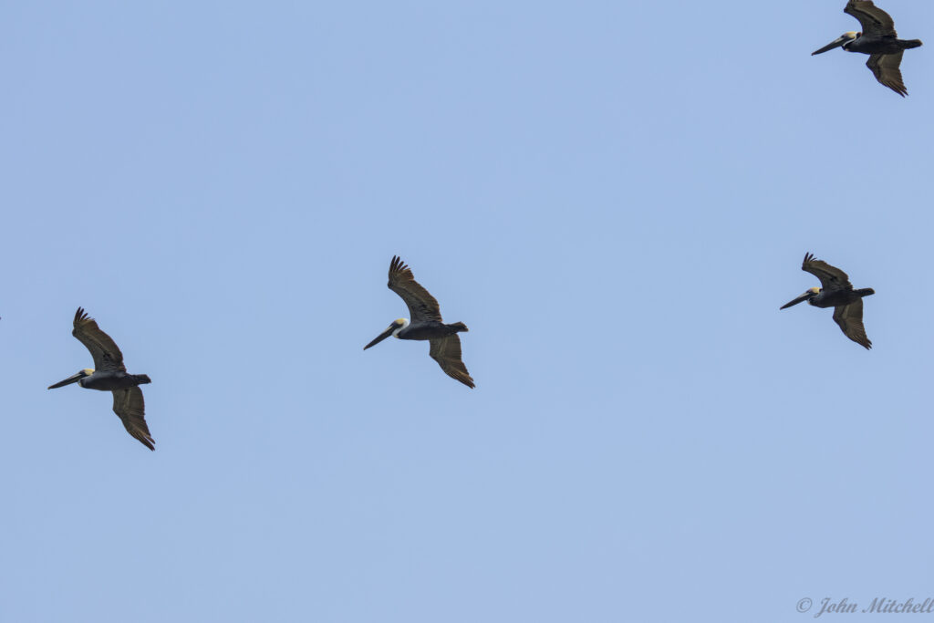 All the time we were watching the birds, flocks of pelicans, seagulls, and cormorants were flying over us. We tried to get some pictures, but most of them did not turn out. These were the few that came out okay.