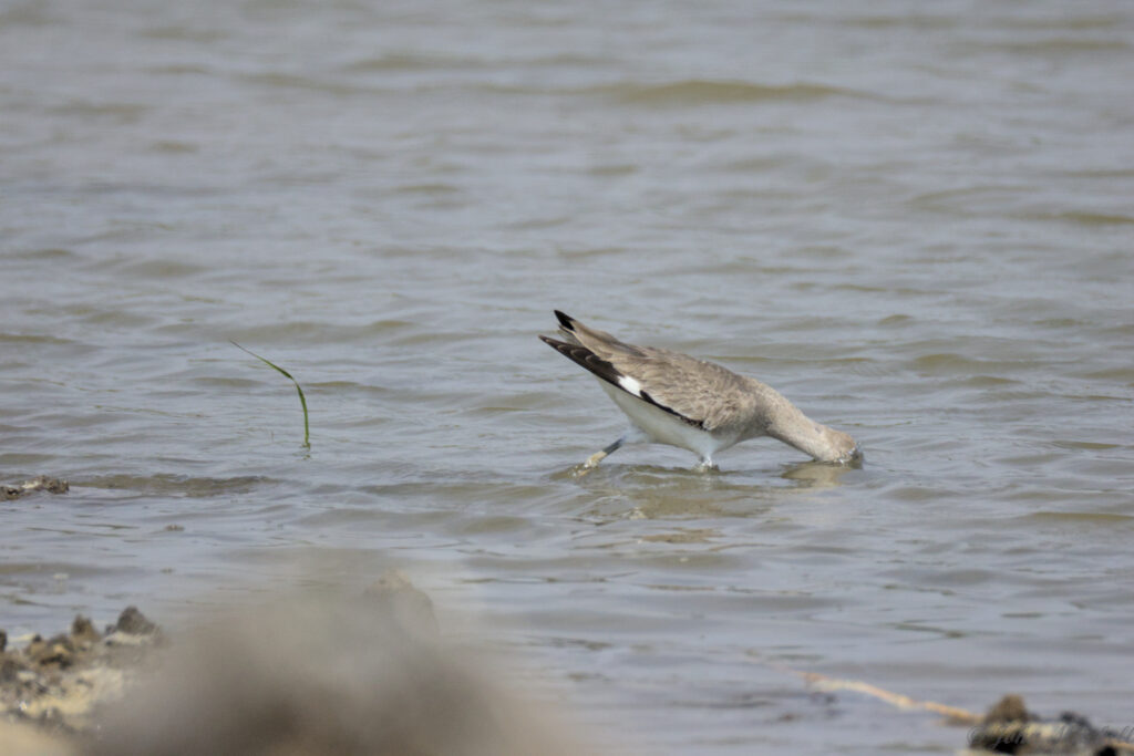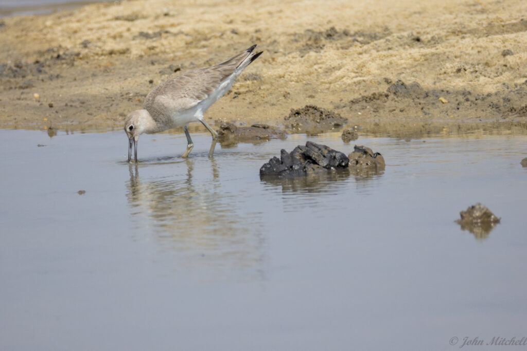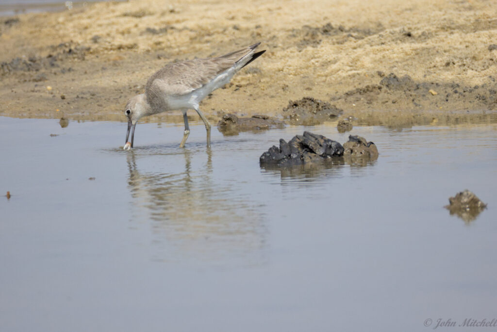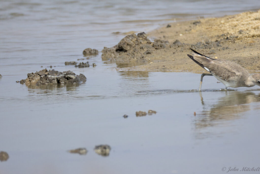 Here you can see the Willet grabbed a fiddler crab, or at least the claw. Clearly, there is enough food for everyone at this time of year.