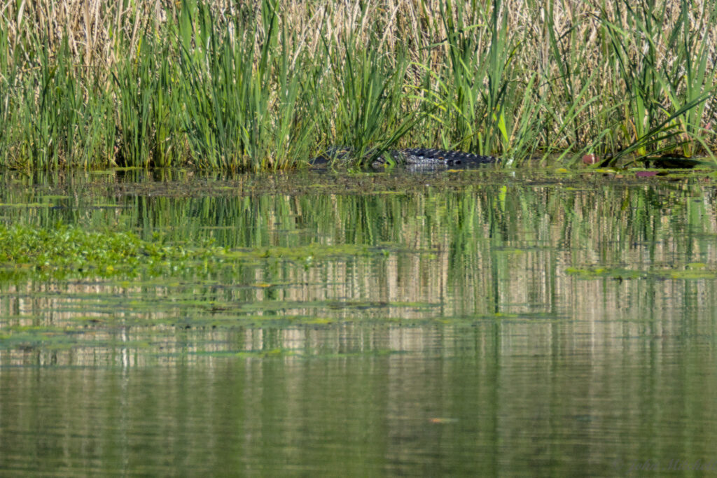 We saw an alligator, but we lost track of him when people walked on the dock and rocked it so much that we could not focus. With a telescopic lens, a small amount of rocking is a huge problem.