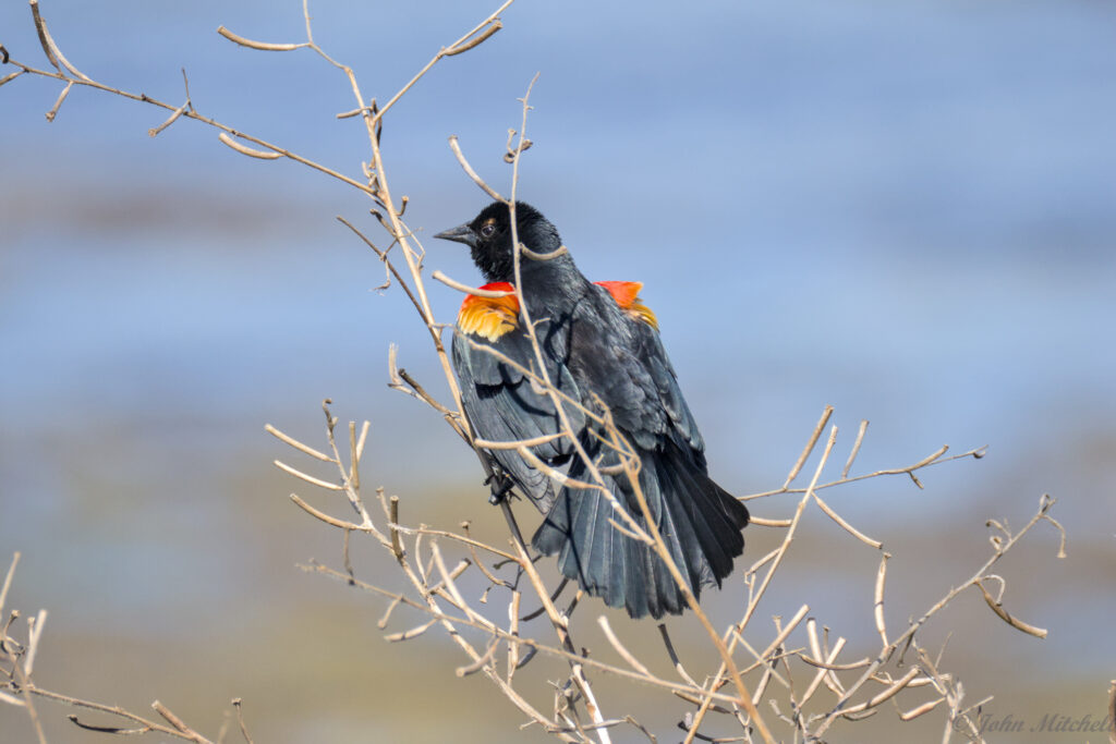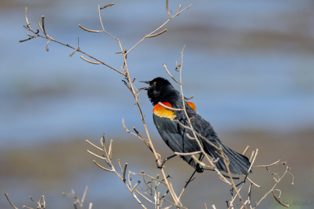 There were no baby alligators in the kiddie pond; they were probably hiding. The lake shore did have more Red-winged Blackbirds than you can shake a stick at. They were screeching like their life depended on it. They have a weird call that reminds us of a Grackle.