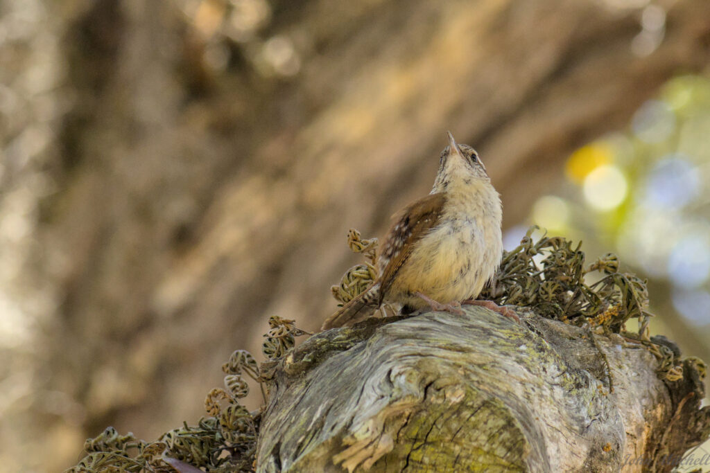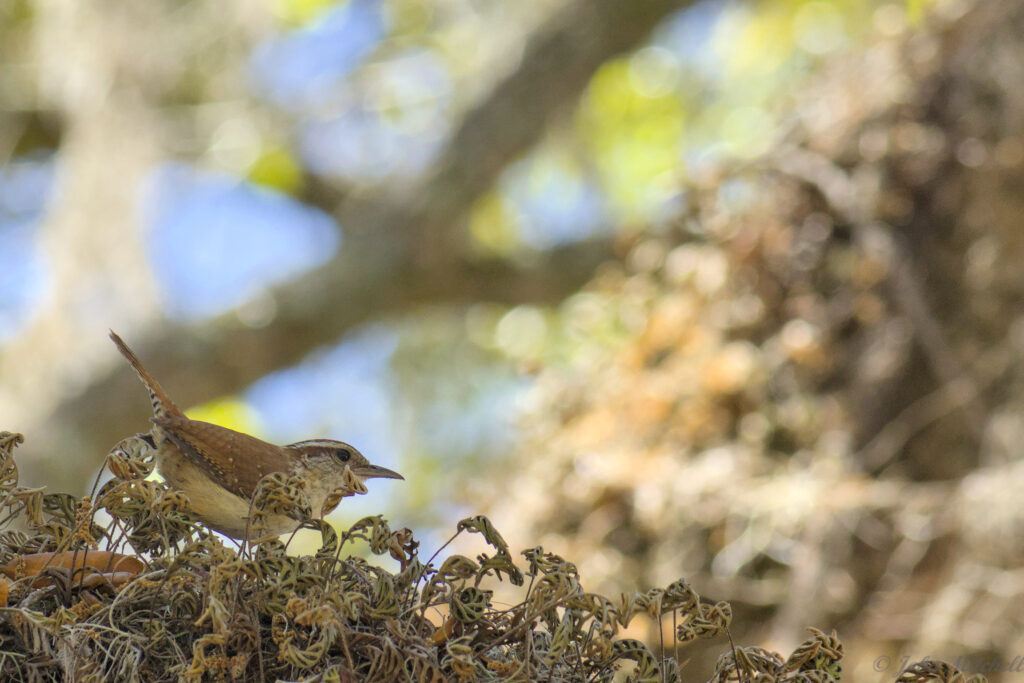 After this, Kate headed on to the office. John had grabbed the campground map, so he walked the loops to note the best sites. Near the end of the circuit, he ran across what must be the most gnat infested site of the campground. It had a new bird, so he just had to suck it up. This appears to be a Carolina Wren. We have heard lots of them, but we have not seen a lot of them.